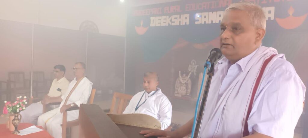 ಸೇರಿದ ವಿದ್ಯಾರ್ಥಿಗಳಿಗೆ ದೀಕ್ಷೆ ನೀಡಿದರು. ನಂತರ ಆರತಿ ಬೆಳಗಿ ತಿಲಕವಿಡುವ ಮೂಲಕ ಹೊಸ ವಿದ್ಯಾರ್ಥಿಗಳನ್ನು ಸ್ವಾಗತಿಸಲಾಯಿತು. ರಾಜ್ಯಪಾಲರಿಂದ ಗೌರವಿಸಲ್ಪಟ್ಟ ಸೌಟ್ ಗೈಡ್ ವಿಭಾಗದ ರಾಜ್ಯಪುರಸ್ಕಾರ ಮತ್ತು golden arrow ಪಡೆದ ವಿದ್ಯಾರ್ಥಿಗಳಿಗೆ ಪ್ರಶಸ್ತಿ ಪತ್ರವನ್ನು ಸಂಸ್ಥೆಯ ಅಧ್ಯಕ್ಷರು ವಿತರಿಸಿದರು.