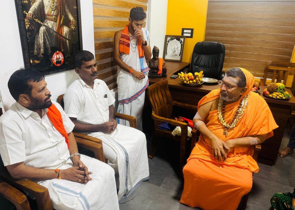 ಈ ಸಂದರ್ಭದಲ್ಲಿ ಮಾತನಾಡಿ, ಸ್ವಾಮೀಜಿಯವರ ಪಾದಸ್ಪರ್ಶದಿಂದ ಹಿಂದವೀ ಕಾರ್ಯಾಲಯವು ಪಾವನವಾಯಿತು. ಸ್ವಾಮೀಜಿಯವರ ಆಶೀರ್ವಾದವೇ ಹಿಂದೂ ಸಮಾಜಕ್ಕೆ ಶ್ರೀರಕ್ಷೆ ಎಂದರು.