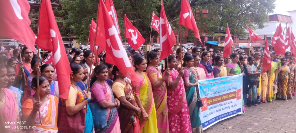 ಕಾರ್ಮಿಕ ಸಂಘಗಳ ಒಕ್ಕೂಟ ಜೆಸಿಟಿಯು ಮತ್ತು ರೈತ ಸಂಘಟನೆಗಳ ಒಕ್ಕೂಟ ಎಸ್.ಕೆ.ಎಂ. ಜಂಟಿ ಆಶ್ರಯದಲ್ಲಿ ನಡೆದ ಅಖಿಲ ಭಾರತ ಮುಷ್ಕರದ ಭಾಗವಾಗಿ ಪುತ್ತೂರು, ಸುಳ್ಯ, ಕಡಬ ತಾಲೂಕಿನ ಅಕ್ಷರ ದಾಸೋಹ ನೌಕರರು ಅಡುಗೆ ಬಂದ್ ಮಾಡಿ ಪುತ್ತೂರು ಎ.ಸಿ. ಕಚೇರಿ ಎದುರು ನಡೆಸಿದ ಪ್ರತಿಭಟನೆಯನ್ನುದ್ದೇಶಿಸಿ ಅವರು ಮಾತಾನಾಡಿದರು.