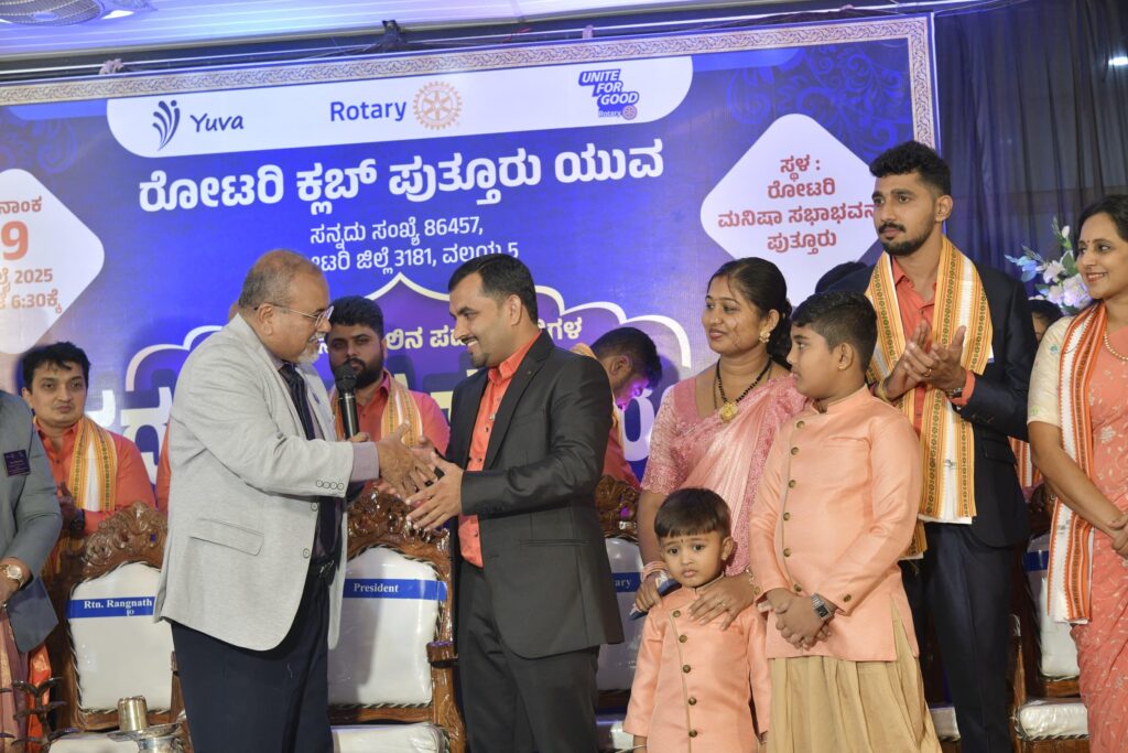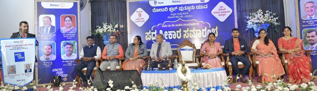 ಪುತ್ತೂರು: ಅಂತಾರಾಷ್ಟ್ರೀಯ ರೋಟರಿ ಜಿಲ್ಲೆ 3181, ವಲಯ ಐದರ ರೋಟರಿ ಕ್ಲಬ್ ಪುತ್ತೂರು ಯುವ ಇದರ 2025-26ನೇ ಸಾಲಿನ ನೂತನ ಪದಾಧಿಕಾರಿಗಳ ಪದ ಪ್ರದಾನ ಸಮಾರಂಭ ರೋಟರಿ ಮನೀಷಾ ಸಭಾಂಗಣದಲ್ಲಿ ಬುಧವಾರ ಸಂಜೆ ಜರಗಿತು.
