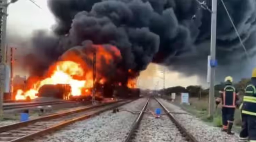 ಡೀಸೆಲ್‌ ಸಾಗಿಸುತ್ತಿದ್ದ ರೈಲಿನಲ್ಲಿ ಭಾರಿ ಬೆಂಕಿ ಅವಘಡ