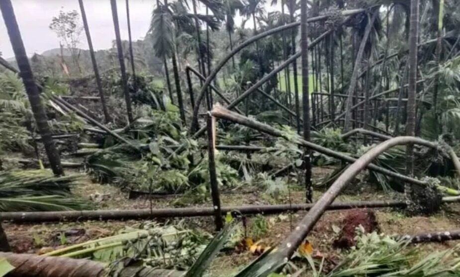 ಅರೇಲ್ತಡಿ ಕೊರಗಜ್ಜನ ಕಟ್ಟೆ, ದೈವಸ್ಥಾನದ ಆಸುಪಾಸು ಹಲವು ಮನೆಗಳಿಗೆ ಹಾನಿ ಸಂಭವಿಸಿದೆ. ಅಪಾರ ಸಂಖ್ಯೆಯಲ್ಲಿ ಅಡಕೆ ಮರಗಳು ಧರೆಗುರುಳಿವೆ. ವಿದ್ಯುತ್ ಕಂಬಗಳು ಬಿದ್ದು, ವಿದ್ಯುತ್ ಪೂರೈಕೆ ವ್ಯತ್ಯಯವಾಗಿದೆ.