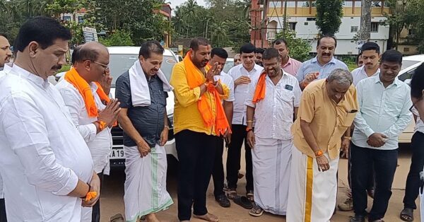 ಇತಿಹಾಸ ಪ್ರಸಿದ್ದ ಮಹಾತೋಭಾರ ಪುತ್ತೂರು ಶ್ರೀ ಮಹಾಲಿಂಗೇಶ್ವರ ದೇವಸ್ಥಾನದ ರಥಬೀದಿಯ ಕೊನೆಯಲ್ಲಿ ಧರ್ಮ ಜಾಗೃತಿ ಯಾತ್ರೆಗೆ ತೆಂಗಿನ ಕಾಯಿ ಒಡೆದು ಚಾಲನೆ ನೀಡಲಾಯಿತು. ಬಿಜೆಪಿ ನಗರ ಮಂಡಲದ ಅಧ್ಯಕ್ಷ ಶಿವಕುಮಾರ್ ಪಿ.ಬಿ ತೆಂಗಿನ ಕಾಯಿ ಒಡೆಯುವ ಮೂಲಕ ಯಾತ್ರೆಗೆ ಚಾಲನೆ ನೀಡಿದರು.