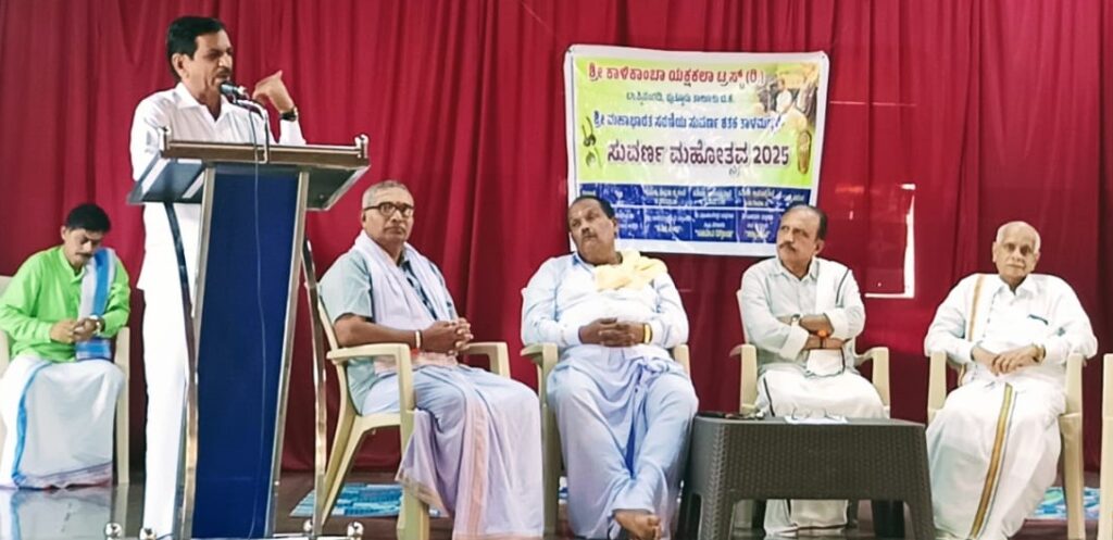 ಸಮಾರಂಭದ ಅಧ್ಯಕ್ಷತೆಯನ್ನು ಕನ್ಯಾಡಿ ಶ್ರೀ ಅಯ್ಯಪ್ಪ ಸ್ವಾಮಿ ದೇವಸ್ಥಾನದ ಅಧ್ಯಕ್ಷ ಹರೀಶ್ ರಾವ್ ಮುಂಡ್ರುಪಾಡಿ ವಹಿಸಿದ್ದರು. ಧರ್ಮಸ್ಥಳ ಜಮಾ ಉಗ್ರಾಣದ ನಿವೃತ್ತ ಮುತ್ಸದ್ದಿ ಬಿ. ಭುಜಬಲಿ ಕಾಳಿಕಾಂಬ ಯಕ್ಷಗಾನ ಟ್ರಸ್ಟ್ ಹಮ್ಮಿಕೊಂಡಿರುವ ಸ್ವರ್ಣ ಮಹೋತ್ಸವದ ಕಾರ್ಯಕ್ರಮಗಳು ಯಶಸ್ವಿಯಾಗಲಿ ಎಂದು ತಿಳಿಸಿದರು.