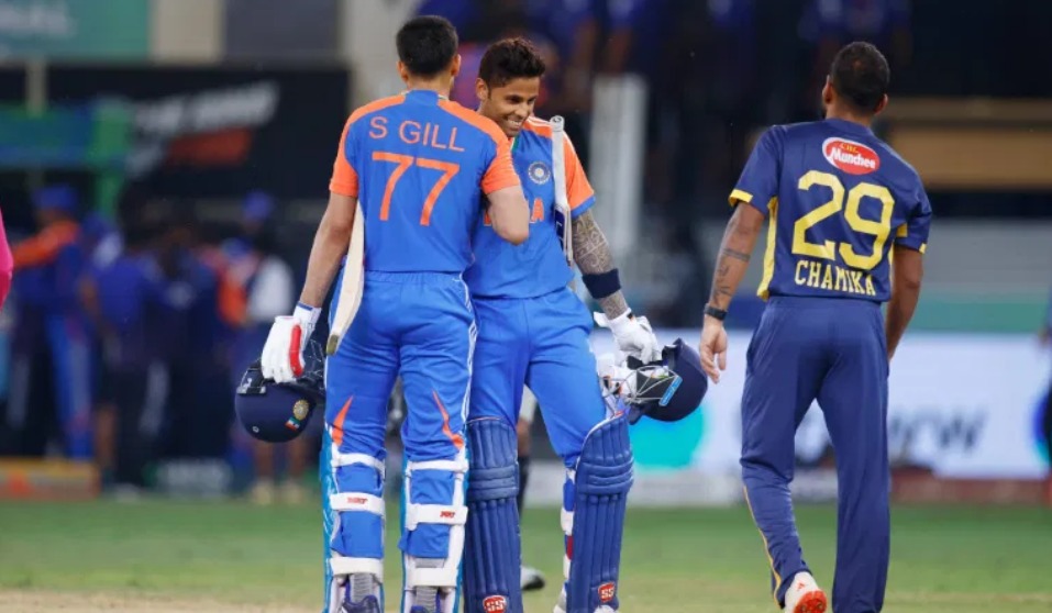 ಭಾರತದ ಪರ ಓಪನರ್ಗಳಾಗಿ ನಾಯಕ ಸೂರ್ಯಕುಮಾರ್ ಮತ್ತು ಶುಭಮನ್ ಗಿಲ್ ಕ್ರೀಸ್ಗೆ ಆಗಮಿಸಿದರು. ಹಸರಂಗ ಎಸೆದ ಮೊದಲ ಎಸೆತವನ್ನು ಸೂರ್ಯಕುಮಾರ್ ಎಕ್ಸ್ಟ್ರಾ ಕವರ್ಗೆ ತಳ್ಳಿ ಮೂರು ರನ್ ಓಡುವ ಮೂಲಕ ಭಾರತ ಜಯ ಸಾಧಿಸಿತು.