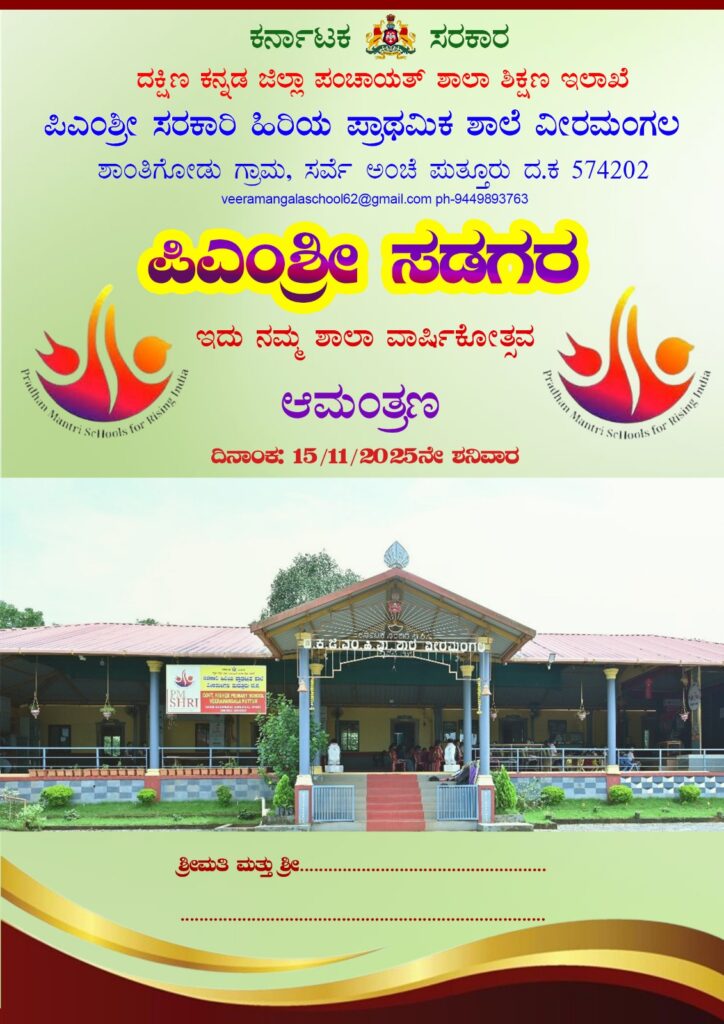 ಪುತ್ತೂರು: ಪಿಎಂಶ್ರೀ ಸರಕಾರಿ ಹಿರಿಯ ಪ್ರಾಥಮಿಕ ಶಾಲೆ ವೀರಮಂಗಲ ಇದರ ವಾರ್ಷಿಕೋತ್ಸವ ಪಿಎಂಶ್ರೀ ಸಡಗರವು 15 ನವೆಂಬರ್ 2025 ರಂದು ನಡೆಯಲಿದ್ದು, ಆ ಪ್ರಯುಕ್ತ ಶಾಲಾ ಮಕ್ಕಳ ವಾರ್ಷಿಕ ಕ್ರೀಡಾಕೂಟ ನವೆಂಬರ್ 8, 2025 ರಂದು ನಡೆಯಲಿದೆ.