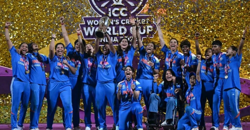 ದಶಕಗಳ ಕಾಯುವಿಕೆ ಬಳಿಕ ಐಸಿಸಿ ಏಕದಿನ ವಿಶ್ವಕಪ್ ಕೂಟದ ಟ್ರೋಫಿ ಎತ್ತಿ ಹಿಡಿದ ಭಾರತದ ವನಿತೆಯರು