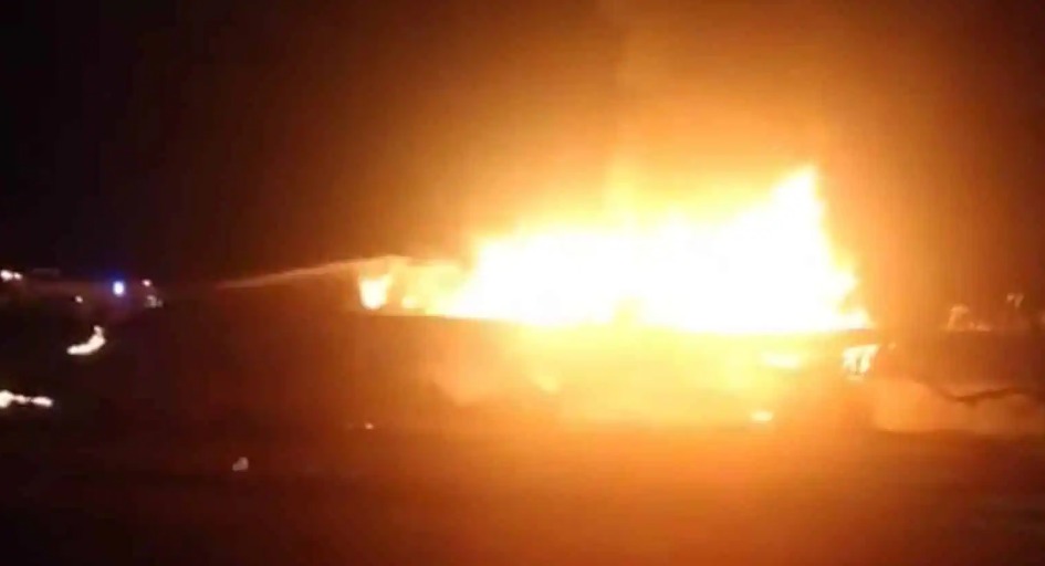 ಟ್ಯಾಂಕರ್ ಡಿಕ್ಕಿ ಹೊಡೆದ ಪರಿಣಾಮ ಹೊತ್ತಿ ಉರಿದ ಬಸ್