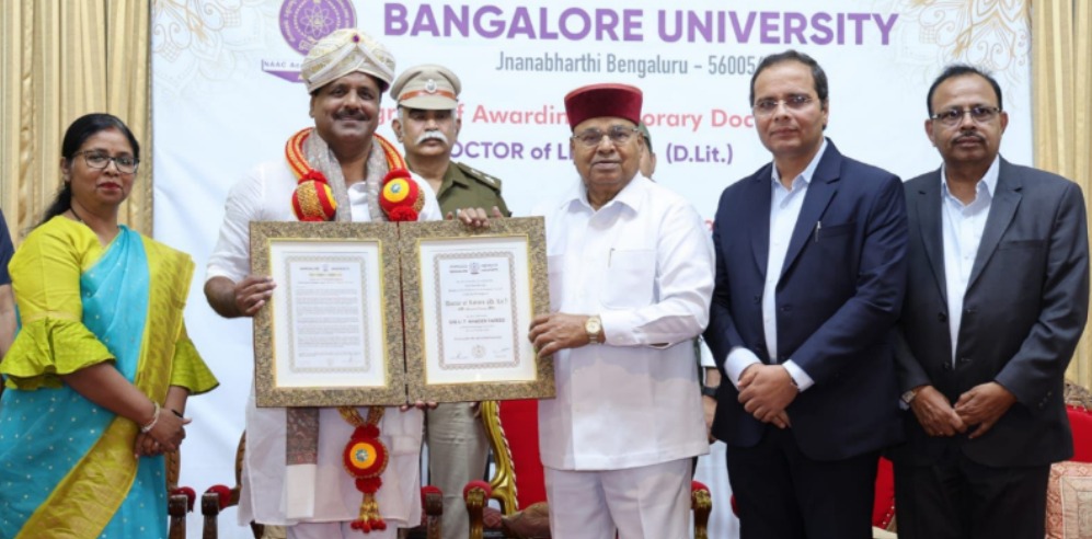 ಬೆಂಗಳೂರು: ವಿಧಾನಸಭೆಯ ಸ್ಪೀಕರ್ ಯು.ಟಿ.ಖಾದರ್ಗೆ ರಾಜ್ಯಪಾಲ ಥಾವರ್ಚಂದ್ ಗೆಹ್ಲೋಟ್ರವರು ಬೆಂಗಳೂರು ವಿಶ್ವವಿದ್ಯಾಲಯದ ಗೌರವ ಡಾಕ್ಟರೇಟ್ ಪದವಿ ಪ್ರದಾನ ಮಾಡಿದ್ದಾರೆ. ರಾಜಭವನದ ಬ್ಯಾಂಕ್ವೇಟ್ ಹಾಲ್ನಲ್ಲಿ ನಡೆದ ಕಾರ್ಯಕ್ರಮದಲ್ಲಿ ಗೌರವ ಪದವಿ ಪ್ರದಾನ ಮಾಡಲಾಯಿತು.