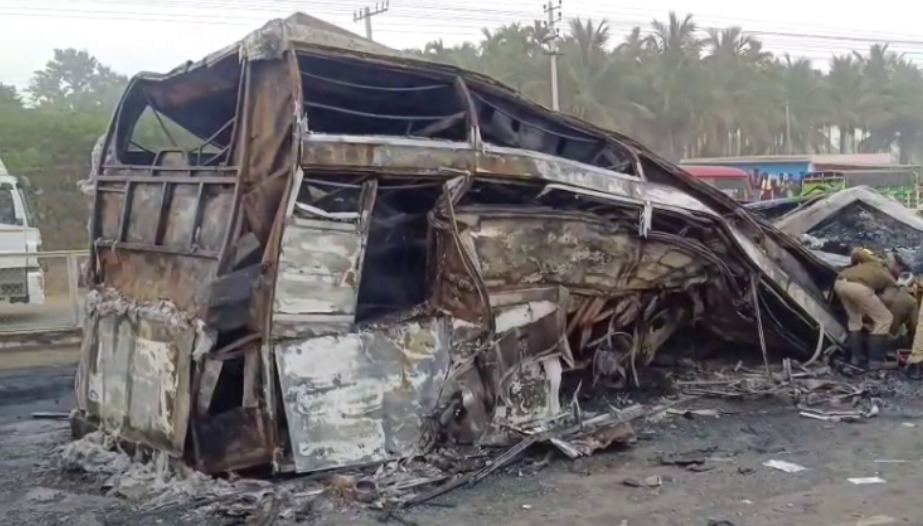 ಕ್ಷಣಾರ್ಧದಲ್ಲಿ ಬೆಂಕಿ ಇಡೀ ಬಸ್ಸಿಗೆ ವ್ಯಾಪಿಸಿ ಒಳಗಿದ್ದವರು ಜೀವಂತ ದಹನ