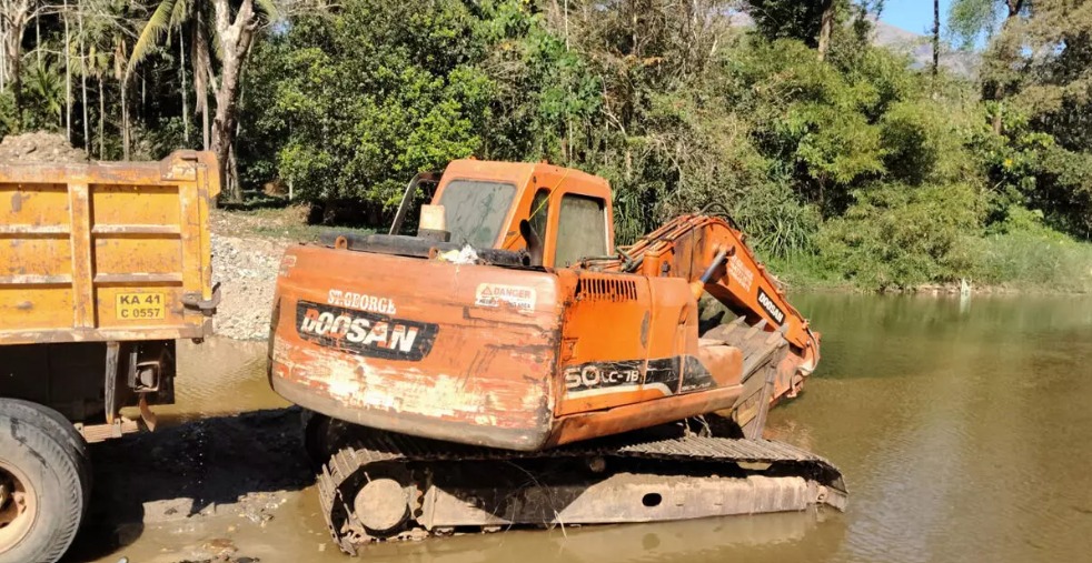 ಬೆಳ್ತಂಗಡಿ : ಸರ್ಕಾರಕ್ಕೆ ರಾಜಧನ ಕಟ್ಟದೆ ನದಿಯ ಕಿನಾರೆಯಿಂದ ಹಿಟಾಚಿ ಬಳಸಿ ಅಕ್ರಮವಾಗಿ ಮರಳು ತೆಗೆಯುತ್ತಿದ್ದ ಅಡ್ಡೆ ಮೇಲೆ ಬೆಳ್ತಂಗಡಿ ಪೊಲೀಸರು ದಾಳಿ ಮಾಡಿ ಪ್ರಕರಣ ದಾಖಲಿಸಿಕೊಂಡಿದ್ದಾರೆ. ಜ.8 ರಂದು ಬೆಳಗ್ಗೆ 7 ಗಂಟೆಗೆ ಸಿಬ್ಬಂದಿ ಜೊತೆ ಬೆಳ್ತಂಗಡಿ ಸಬ್ಇನ್ಸ್ಪೆಕ್ಟರ್ ಆನಂದ್ ಎಂ ರೌಂಡ್ ಕರ್ತವ್ಯದಲ್ಲಿರುವಾಗ ಮಾಹಿತಿದಾರರಿಂದ ಸಿಕ್ಕ ಖಚಿತ ಮಾಹಿತಿ ಮೇರೆಗೆ ಕಡಿರುದ್ಯಾವರ ಗ್ರಾಮದ ಗಂಡಿಬಾಗಿಲು ಎಂಬಲ್ಲಿ ದಾಳಿ ಮಾಡಿದಾಗ ನೇತ್ರಾವತಿ ನದಿ ಕಿನಾರೆಯಿಂದ ಮರಳು ಕಳ್ಳತನ ಮಾಡಿ ಹಿಚಾಚಿ ಮೂಲಕ ಟಿಪ್ಪರ್ ಲಾರಿಗೆ ತುಂಬಿಸಿ ಮಾರಾಟ ಮಾಡುತ್ತಿರುವುದು ಬೆಳಕಿಗೆ ಬಂದಿದೆ.
