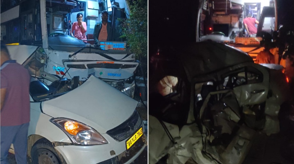ಕಾರು-ಬಸ್‌ ಡಿಕ್ಕಿ : ಮಗು ಸಹಿತ ಮೂವರು ಸಾವು