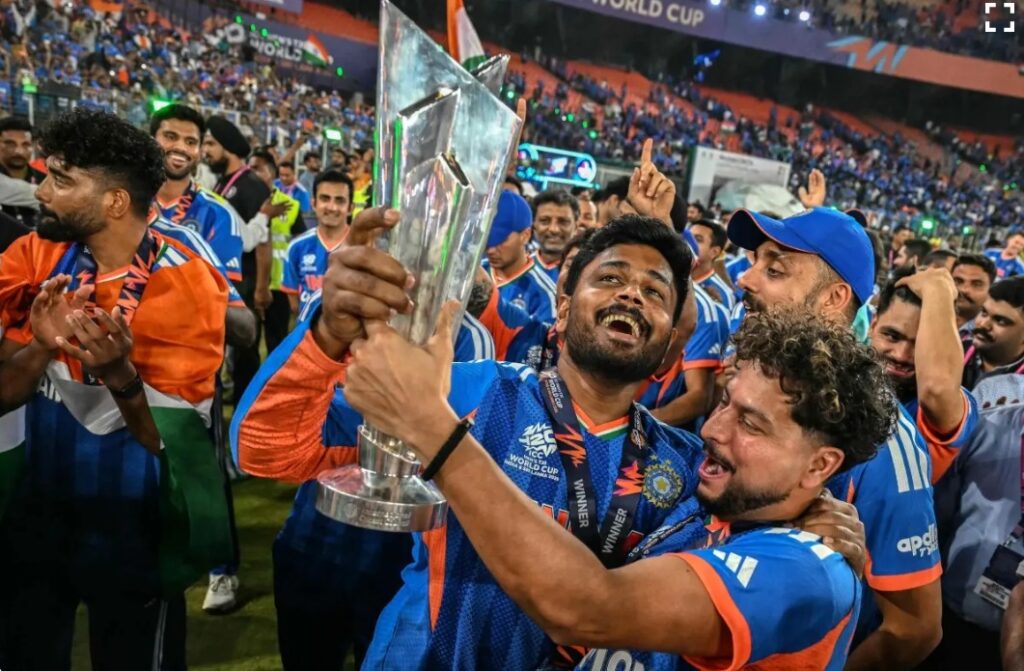 ಅಹಮದಾಬಾದ್‌: ಅಹಮದಾಬಾದ್‌ನ ನರೇಂದ್ರ ಮೋದಿ ಕ್ರಿಕೆಟ್‌ ಸ್ಟೇಡಿಯಂನಲ್ಲಿ ನಡೆದ ಟಿ20 ವಿಶ್ವಕಪ್ ಫೈನಲ್‌ನಲ್ಲಿ ಭಾರತ ತಂಡ ನ್ಯೂಜಿಲೆಂಡ್ ತಂಡವನ್ನು 96 ರನ್‌ಗಳ ಬೃಹತ್ ಅಂತರದಿಂದ ಸೋಲಿಸಿ ಟ್ರೋಫಿ ತನ್ನದಾಗಿಸಿಕೊಂಡಿತು. ಸೂರ್ಯಕುಮಾರ್ ಯಾದವ್ ನೇತೃತ್ವದ ತಂಡ ಮೊದಲು ಬ್ಯಾಟಿಂಗ್ ಮಾಡಿ 255 ರನ್‌ಗಳ ಬೃಹತ್ ಮೊತ್ತವನ್ನು ಗಳಿಸಿತು. ಆ ಬಳಿಕ ಗುರಿ ಹಿಂಬಾಲಿಸಿದ ಮಿಚೆಲ್ ಸ್ಯಾಂಟ್ನರ್ ನೇತೃತ್ವದ ನ್ಯೂಜಿಲೆಂಡ್‌ ತಂಡವನ್ನು ಕೇವಲ 159 ರನ್‌ಗಳಿಗೆ ಆಲೌಟ್ ಮಾಡಿತು.