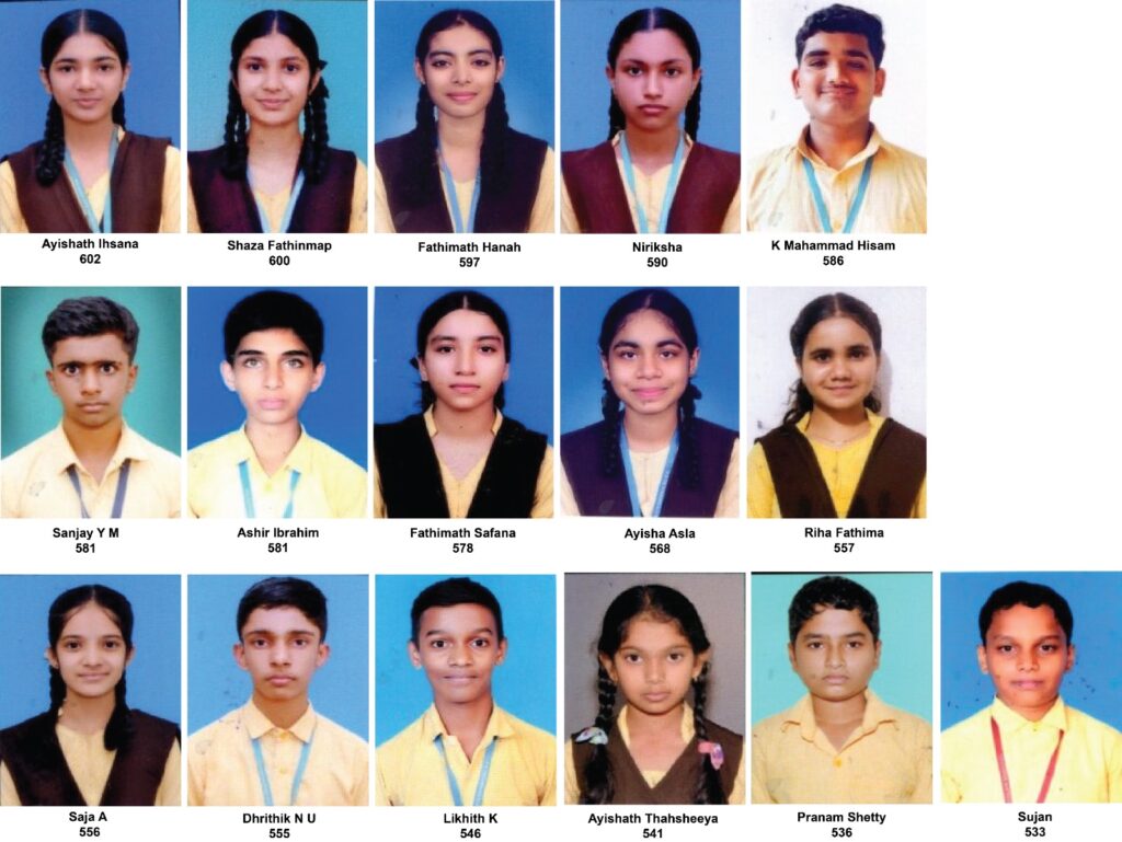 ವಿಶಿಷ್ಟ ಶ್ರೇಣಿಯ ಸಾಧಕರು: ಅಯಿಷತ್ ಇಹ್ಶಾನ-602 (ಕಲಂಬಿ ಪಲ್ಲತ್ತಾರು ಅಬ್ಬಾಸ್ ಮತ್ತು ರೆಹನತ್ ದೇಂಬಲೆ ಇವರ ಮಗಳು), ಶಝ ಫಾತಿಮ ಪಿ – 600 (ಉಮ್ಮರ್ ಶಾಫಿ ಪಿ. ಮತ್ತು ಫಾತಿಮತ್ ಶಹರ್ ಬಾನ್ ಪಿ. ಇವರ ಮಗಳು), ಫಾತಿಮತ್ ಹನ -597 (ಹಂಝ ಪಿ. ಮತ್ತು ಎಂ. ರಹಿಮತ್ ಬೀಬಿ ಇವರ ಮಗಳು) , ನಿರೀಕ್ಷಾ-560(ತಿಮ್ಮಪ್ಪ ಪೂಜಾರಿ ಮತ್ತು ವಿಜಯಲಕ್ಷಿ ಇವರ ಮಗಳು), ಕೆ. ಮಹಮ್ಮದ್ ಇಶಾಂ -586(ಕೆ ಅಬ್ದುಲ್ ಹಮೀದ್ ಮತ್ತು ಮಸೀದಾ ಎ. ಇವರ ಮಗ), ಅಶೀರ್ ಇಬ್ರಾಹಿಂ -581 (ಹಂಝ ಮತ್ತು ಅಯೀಶಾ ಇವರ ಮಗ), ಸಂಜಯ್ ವೈ. ಎಂ. -581(ಮಂಜುನಾಥ ಮತ್ತು ಸುಮಿತ್ರಾ ಇವರ ಮಗ), ಫಾತಿಮತ್ ಸಫಾನ -578 (ಅಬ್ದುಲ್ ರಝಾಕ್ ಮತ್ತು ಮರಿಯಮ್ಮ ಇವರ ಮಗಳು), ಅಯಿಷ ಅಸ್ಲ -578(ಅಬ್ಬಾಸ್ ಮತ್ತು ಅವ್ವಮ್ಮ ಇವರ ಮಗಳು), ರಿಹಾ ಫಾತಿಮ- 557 (ಆರ್ ಫಾರೂಕ್ ಮತ್ತು ಅಫ್ಸ ಇವರ ಮಗಳು) ಸಜ ಎ. -557 (ಎ. ಶರೀಫ್ ಮತ್ತು ಕೆ. ಎಂ. ಸುನೈಸ ಇವರ ಮಗಳು), ಧೃತಿಕ್ ಎನ್ ಯು-555( ಎನ್ ಉಮೇಶ ಮತ್ತು ತೀರ್ಥಕುಮಾರಿ ಇವರ ಮಗ), ಲಿಖಿತ್ ಕೆ -547(ಸಂಜೀವ ಕೆ. ಮತ್ತು ಗೌರಿ ಕೆ. ಇವರ ಮಗ), ಆಯಿಷತ್ ತಹಶಿಯ- 541(ಕಾಲಿದ್ ಮತ್ತು ಝೀನತ್ ಇವರ ಮಗಳು), ಪ್ರಣಾಮ್ ಶೆಟ್ಟಿ -537(ದಿನೇಶ್ ಶೆಟ್ಟಿ ಮತ್ತು ರತಿಜಾಕ್ಷಿ ಇವರ ಮಗ), ಸುಜನ್-533(ಶಾಂತಾರಾಮ್ ಮತ್ತು ರೇಖಾ ಕೆ ಇವರ ಮಗ) ವಿಶಿಷ್ಟ ಶ್ರೇಣಿಯಲ್ಲಿ ತೇರ್ಗಡೆ ಹೊಂದಿದ್ದಾರೆ.